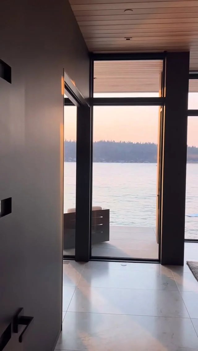 Arranged towards the view of Mt. Rainier, this waterfront house features board formed concrete, architectural steel, and a tiered water feature.